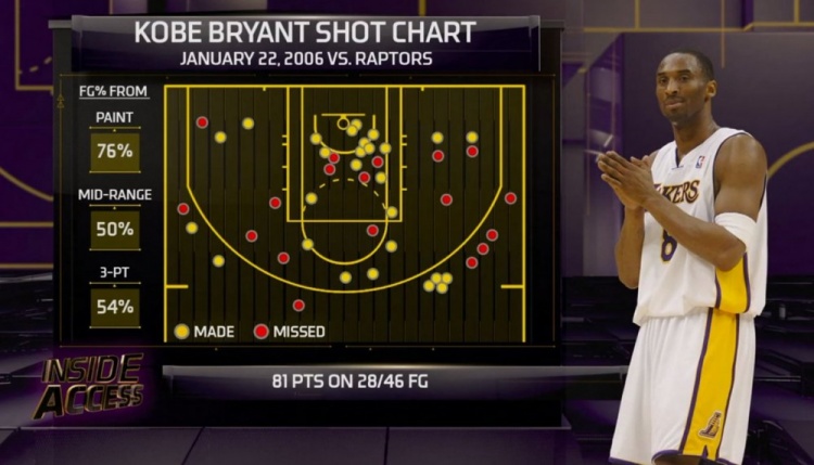 本场比赛,湖人球星科比·布莱恩特出战42分钟,46投28中,三分球13投7中,罚球20罚18中,狂砍81分,创造了个人职业生涯单场得分纪录,同时也创造了NBA历史单场第二高分,仅次于张伯伦在1962年创下的单场100分。